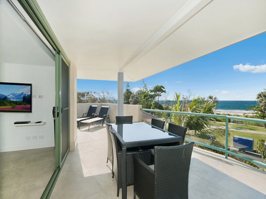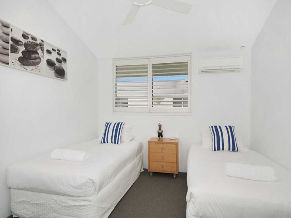To the rear of the penthouse are three spacious guest bedrooms. The master has its own flat screen TV and is accompanied by an en-suite bathroom and a private deck overlooking the nature reserve. The second bedroom has a queen bed and third bedroom two single beds. Each bedroom is individually air conditioned. The main bathroom has a bath and the shower cubical has a window with an ocean view so you can check the surf while you shower!