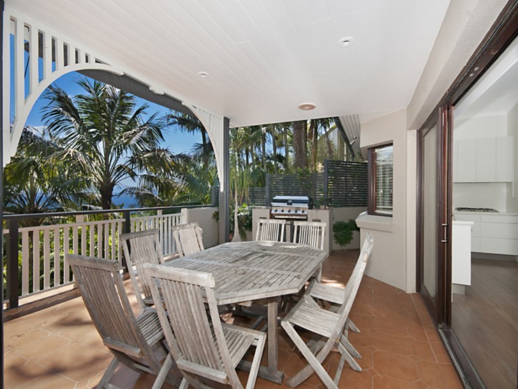 The master bedroom is a secluded haven, is access via its own private staircase and occupies the top level of the home. From the master balcony enjoy the ocean views and cooling sea breezes. The master en-suite features a deep bathtub and there is also a TV in the bedroom.