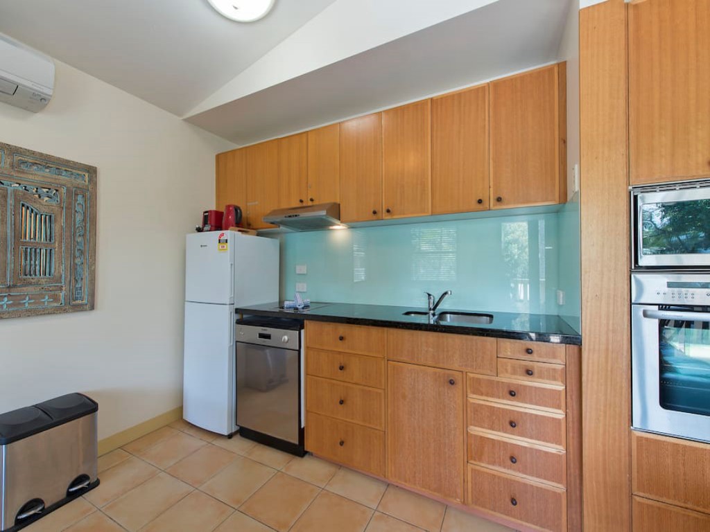 The living area of the apartment is open plan and supplies everything you need for a comfortable stay. Complimentary Wi-Fi, Foxtel TV and reverse cycle air-conditioning for your comfort. A fully equipped kitchen should you choose to eat in, has everything you need dishwasher, convection oven, and cooktop. One of the best features of Kemali is its north facing aspect. The living room opens to a lovely balcony which overlooks the heated salt water resort pool and has a fantastic spot to soak up the sun or kick back with a good book.
